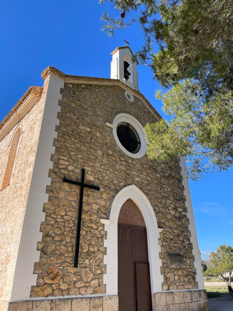 The stage begins at Fuente de la Morera which is just off the local road CV655 and about 12 km from Ontinyent. Nearby there is a Hermitage / Ermita of the same name. It is really a full-blown church. Below is a photo (and a video) of the place as it is quite interesting.